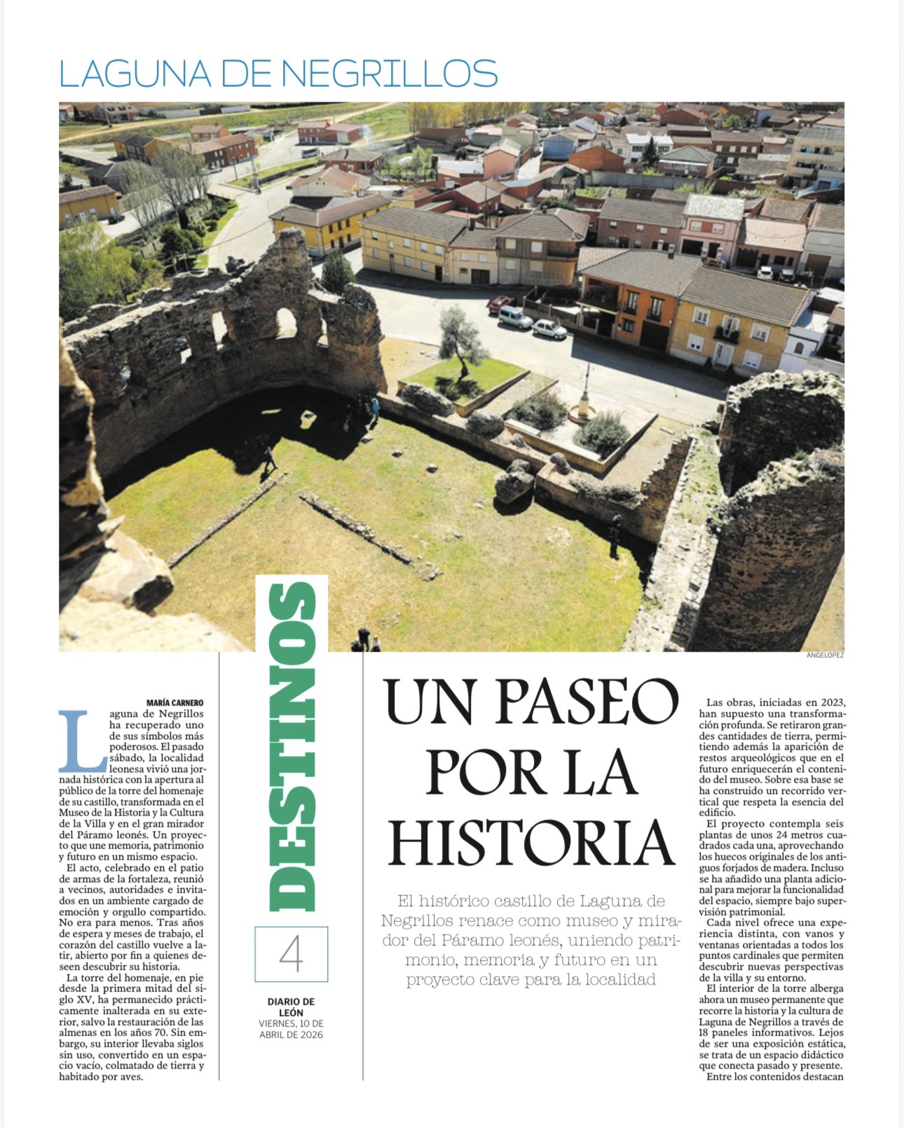 Este viernes, Laguna de Negrillos fue protagonista en la sección periodística de turismo “DESTINOS” del Diario de León.
