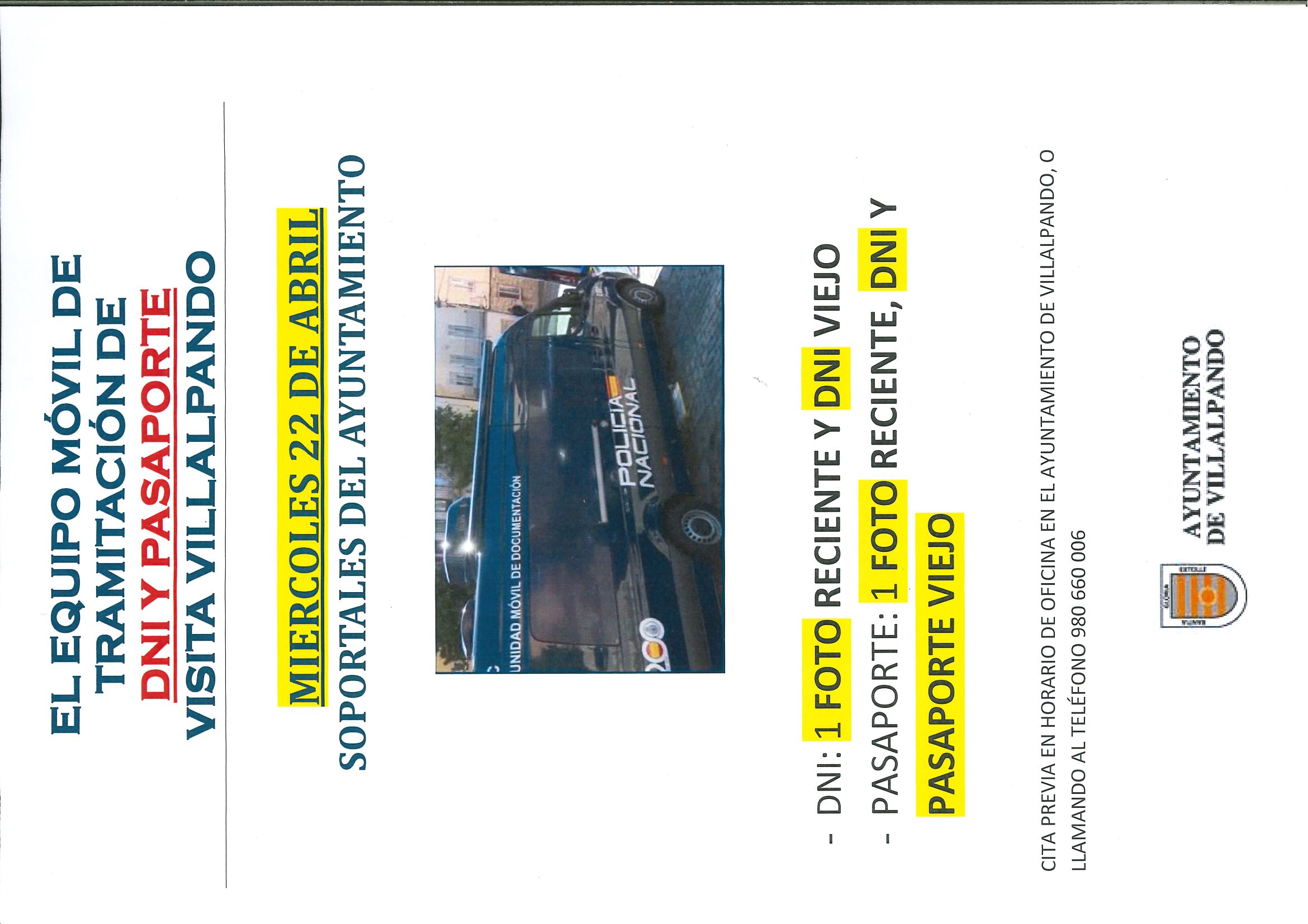 El 22 de abril, la unidad móvil de tramitación del DNI y Pasaporte estará en Villalpando, pide cita en el Ayuntamiento