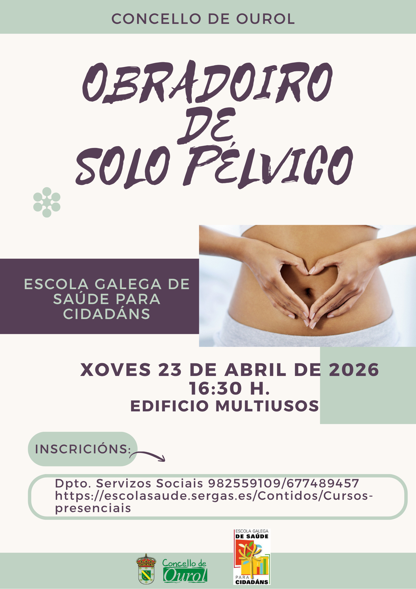 Dende o Departamento de Servizos Sociais do Concello de Ourol, en colaboración coa Escola Galega de Saúde para Cidadáns, poñemos en marcha un Obradoiro de Solo Pélvico, dirixido a mellorar a información e comprensión dos cambios evolutivos da muller, así como a previr enfermidades propias do colectivo feminino.
