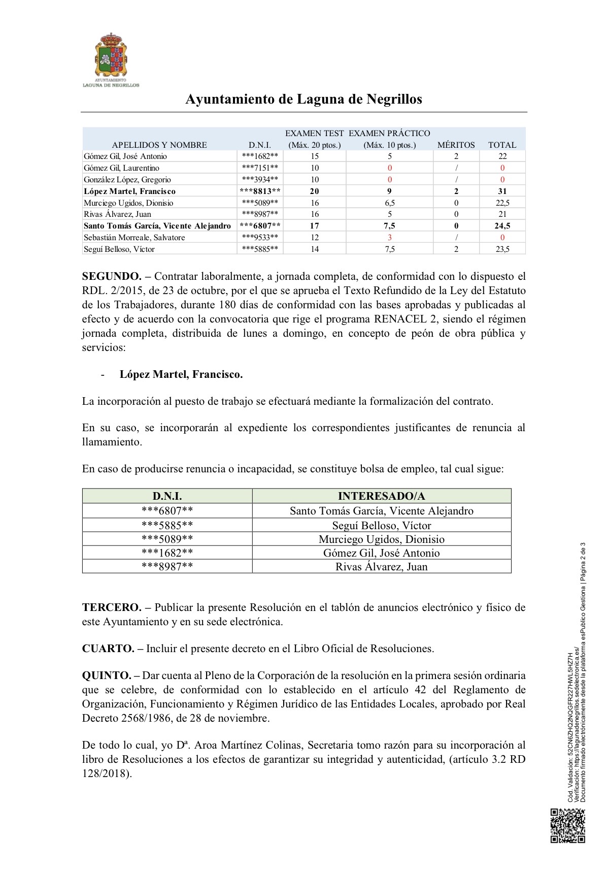 Resolución de las 2 plazas de Peones de Servicios Múltiples