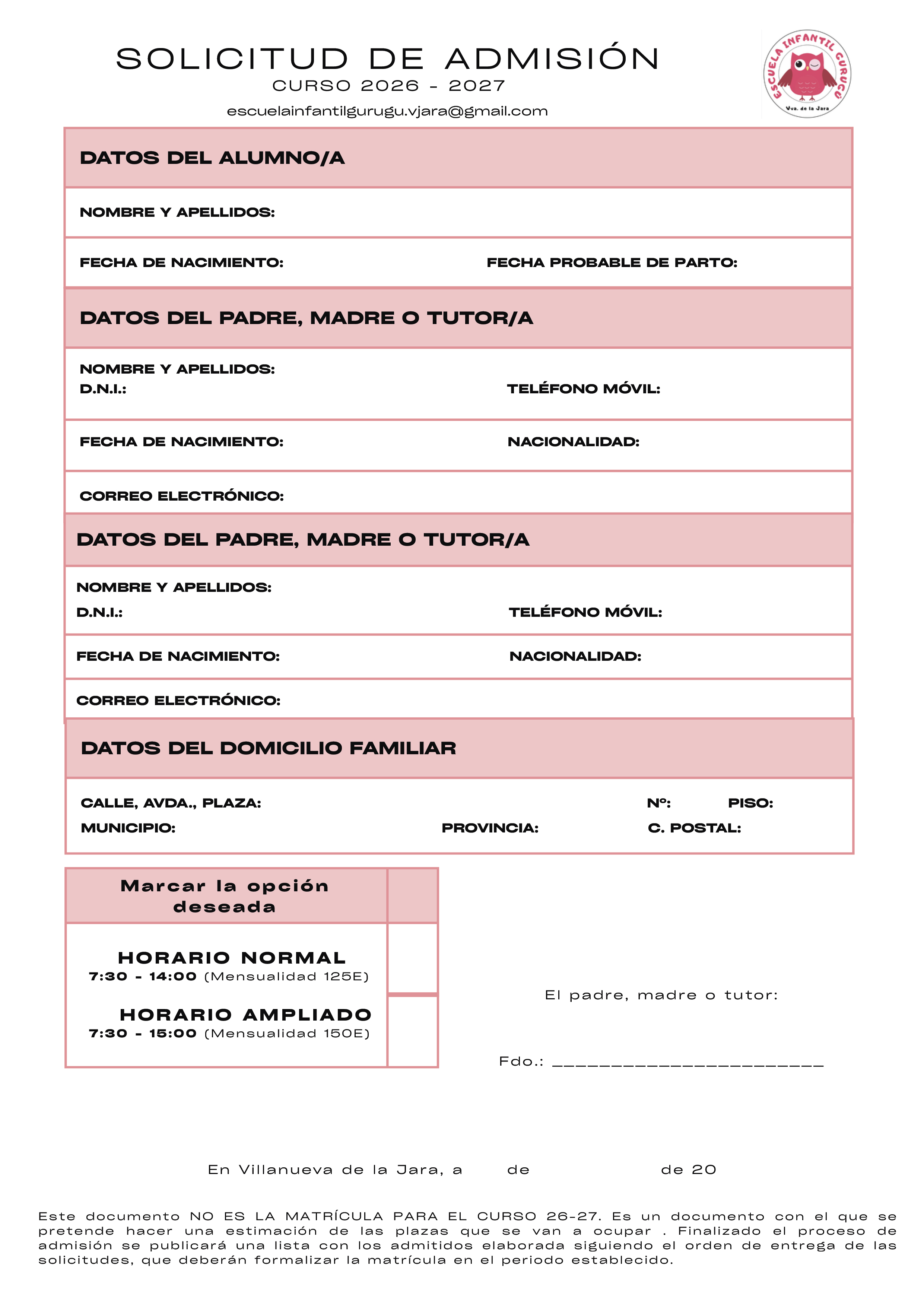 #VillanuevadelaJara #EscuelaInfantil #Gurugú #Admisión #Familias