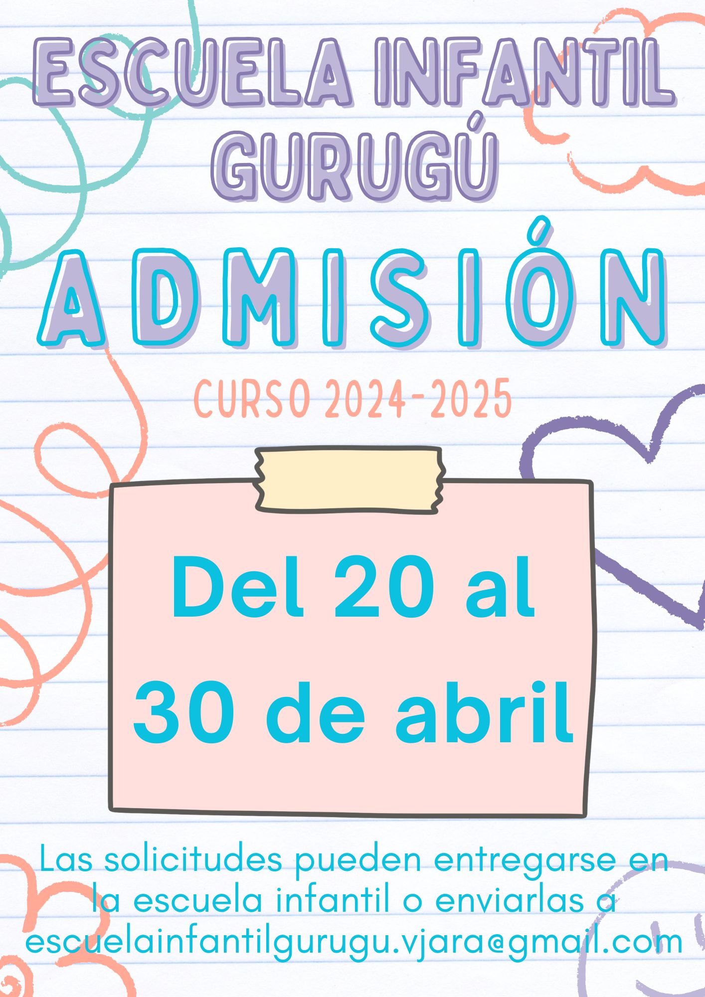 👶📚 Próxima apertura del plazo de admisión en la Escuela Infantil Gurugú