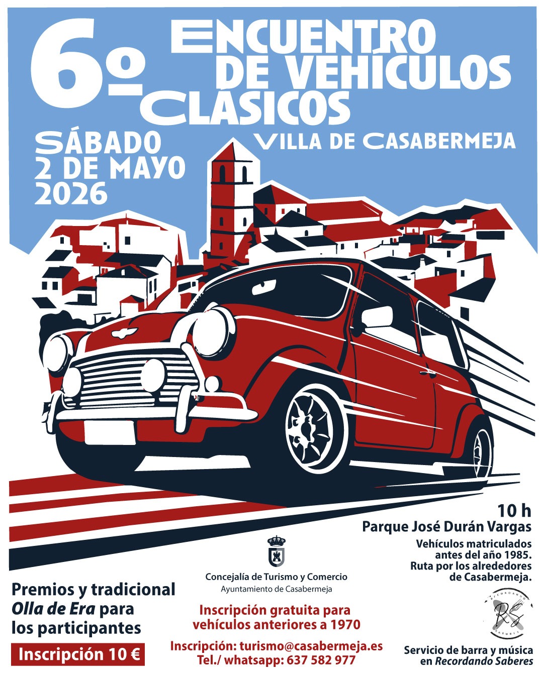👉 Durante el evento habrá servicio de barra 🍻🍷🍺 y música, 🎼 y a partir de las 16,30 se hará la entrega de premios🏆. Se premiará al vehículo de procedencia más lejana, al vehículo más antiguo y al vehículo mejor conservado. El premio consistirá en una cesta de productos locales de Casabermeja!!!