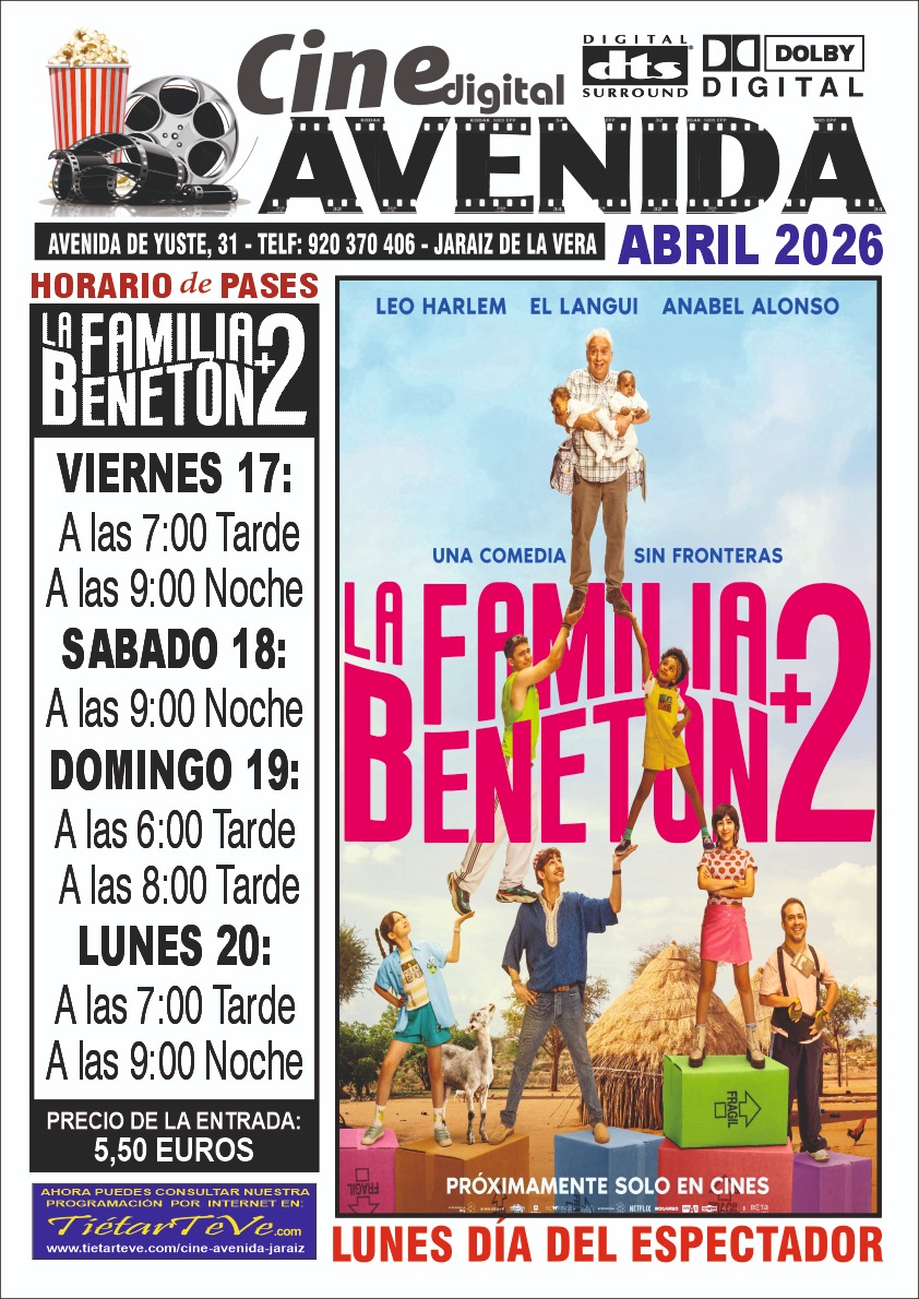 Consulta la cartelera en https://tietarteve.com/cine-avenida-jaraiz/