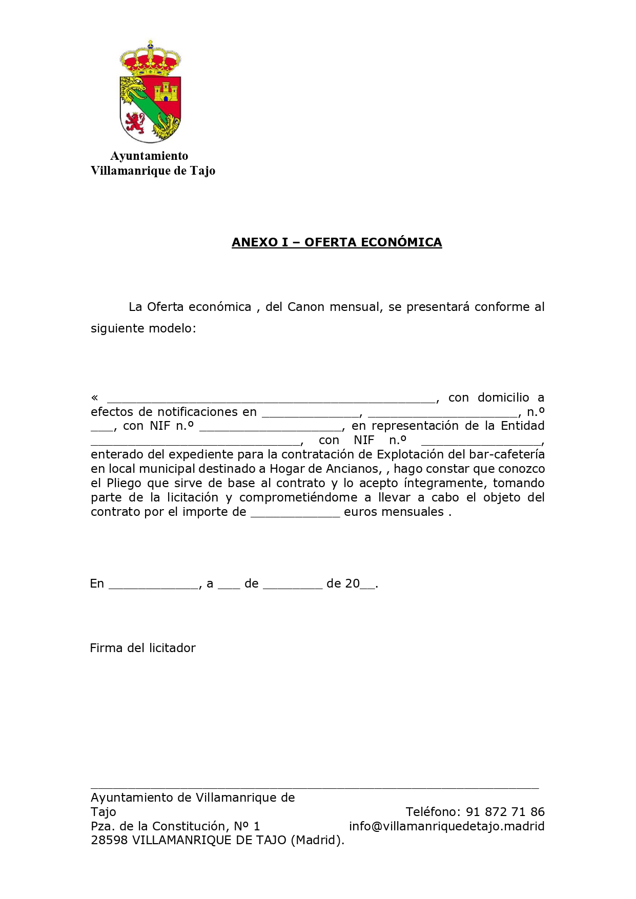 Para poder optar a este concurso se debe tener los requisitos que aparecen en las bases, traer los datos que se piden y cumplimentar la hoja de oferta económica.