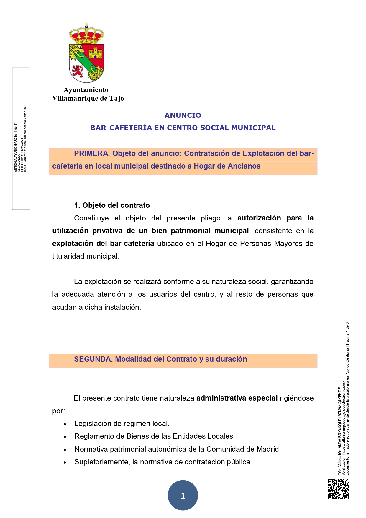 SALIDA A CONCURSO DE LA EXPLOTANCIÓN DEL BAR-CAFETERÍA DEL CENTRO SOCIAL