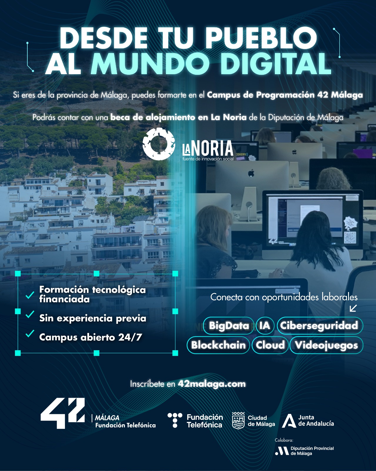 Ahora puedes hacerlo gratis en 42 Málaga y, además, contar con una beca de alojamiento en La Noria mientras estudias📍