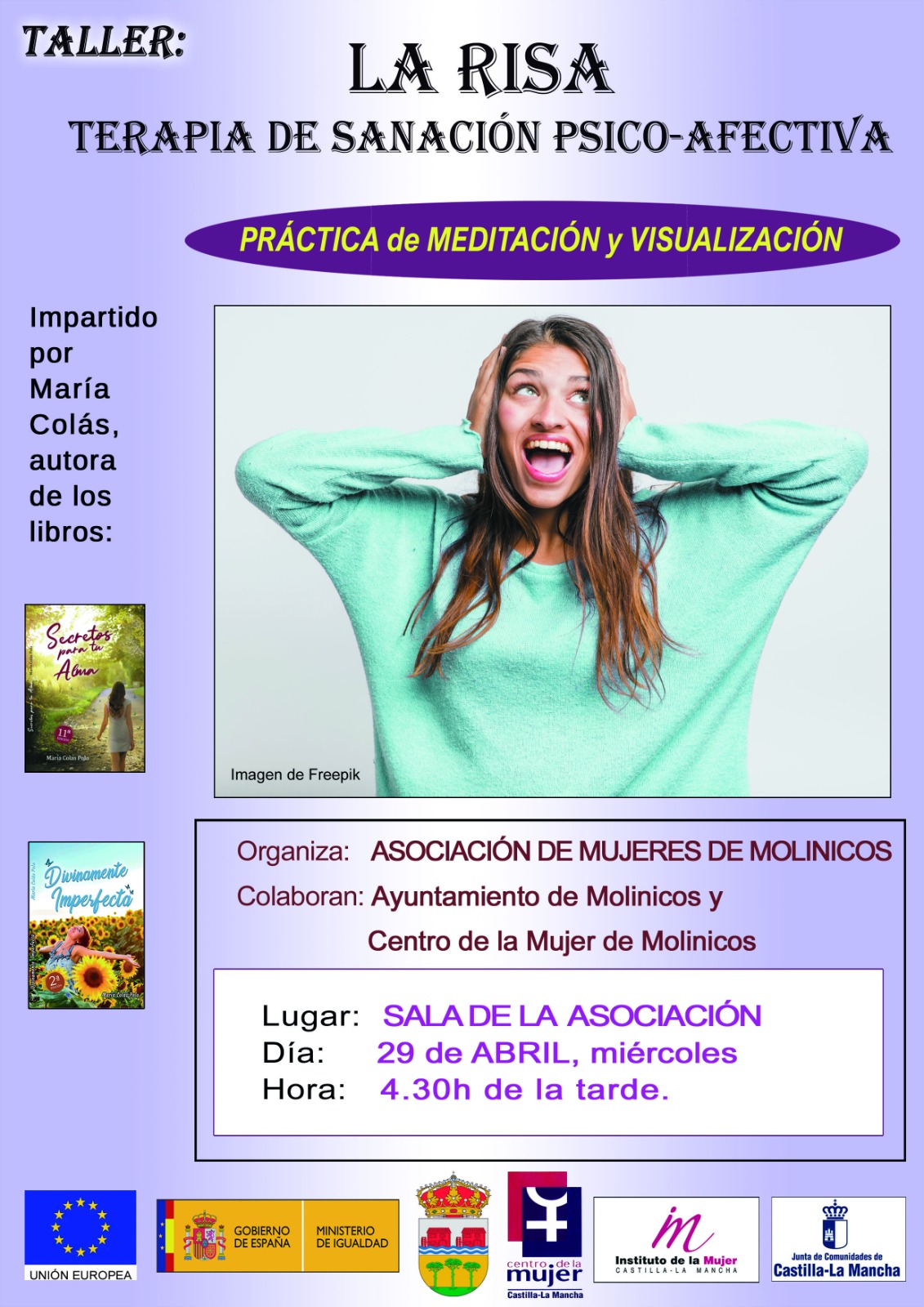 Mañana, miércoles 29 de abril, a las 16.30h, taller La Risa: terapia de sanación psico-afectiva, con práctica de meditación, impartido por María Colás. Será en la Sala de la Asociación de Mujeres. Os esperamos!