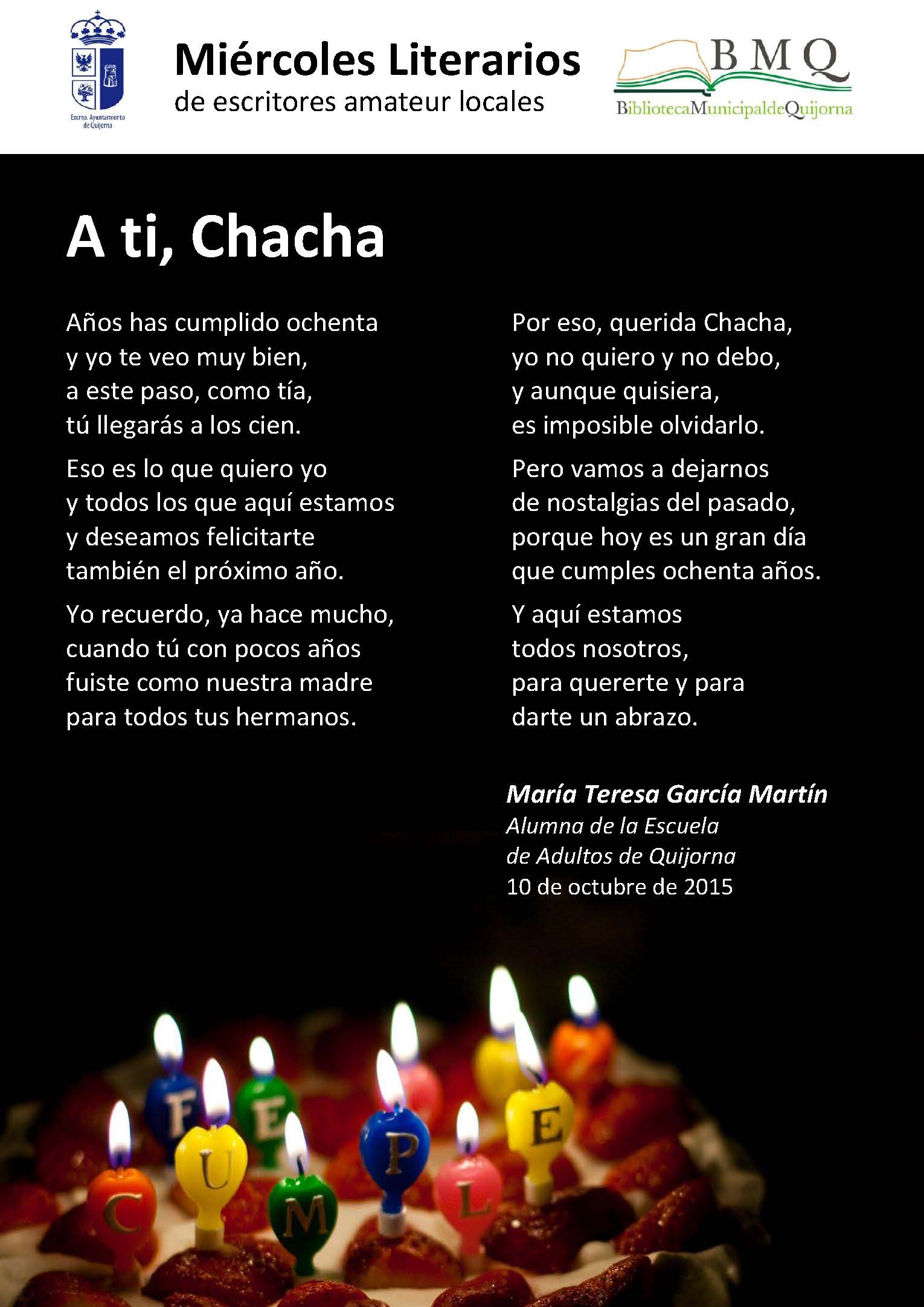 Poesía de Mª Teresa García Martín: "A ti, Chacha"