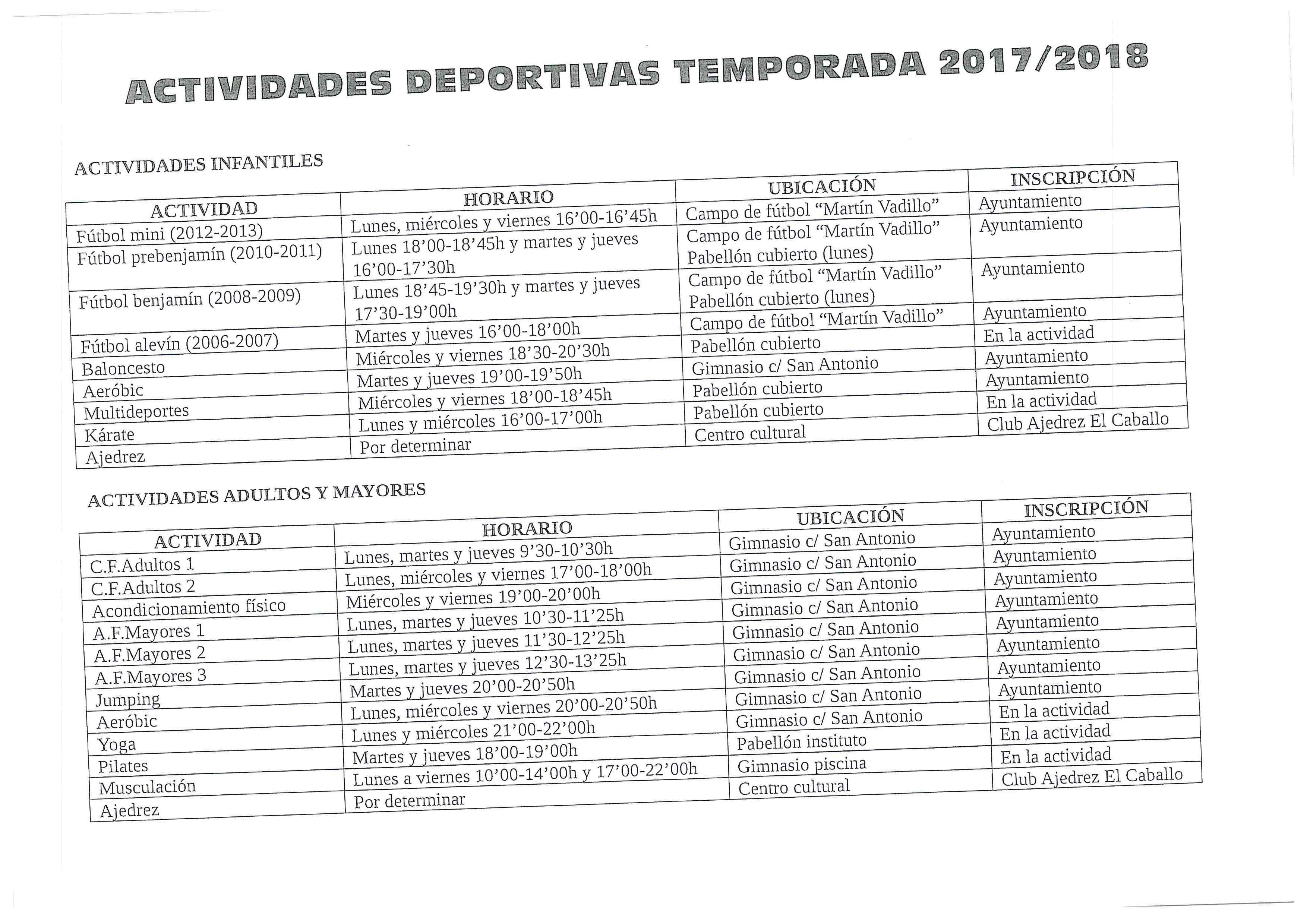 Abierto el plazo de inscripciones para las actividades deportivas de la temporada 2017/2018