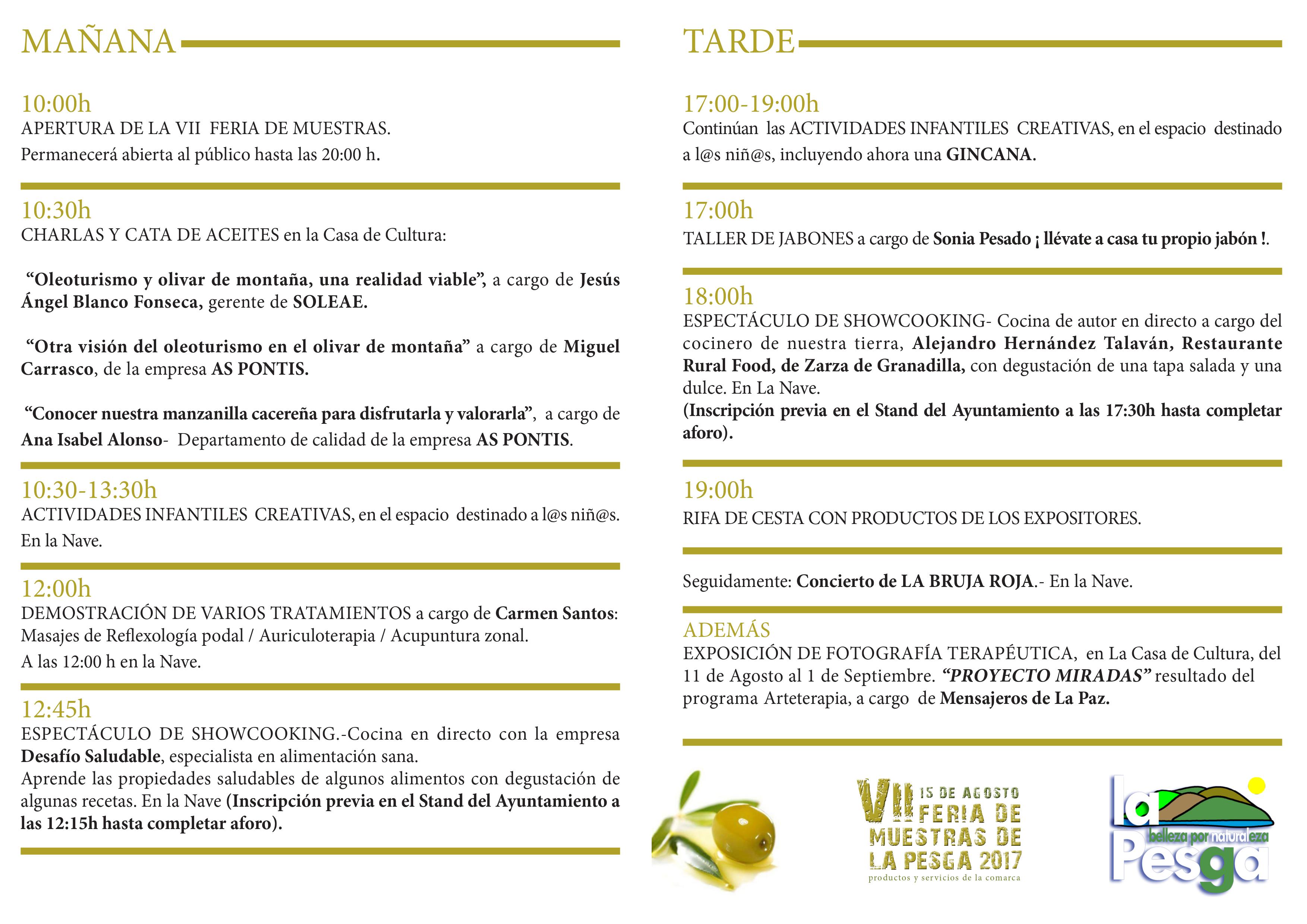 Se comunica a todos los interesados, que el martes 15 de agosto, tendrĂ¡ lugar la VII Feria de muestras, productos y servicios de la comarca, en la Nave Multiusos de 10:00 a 20:00 horas.