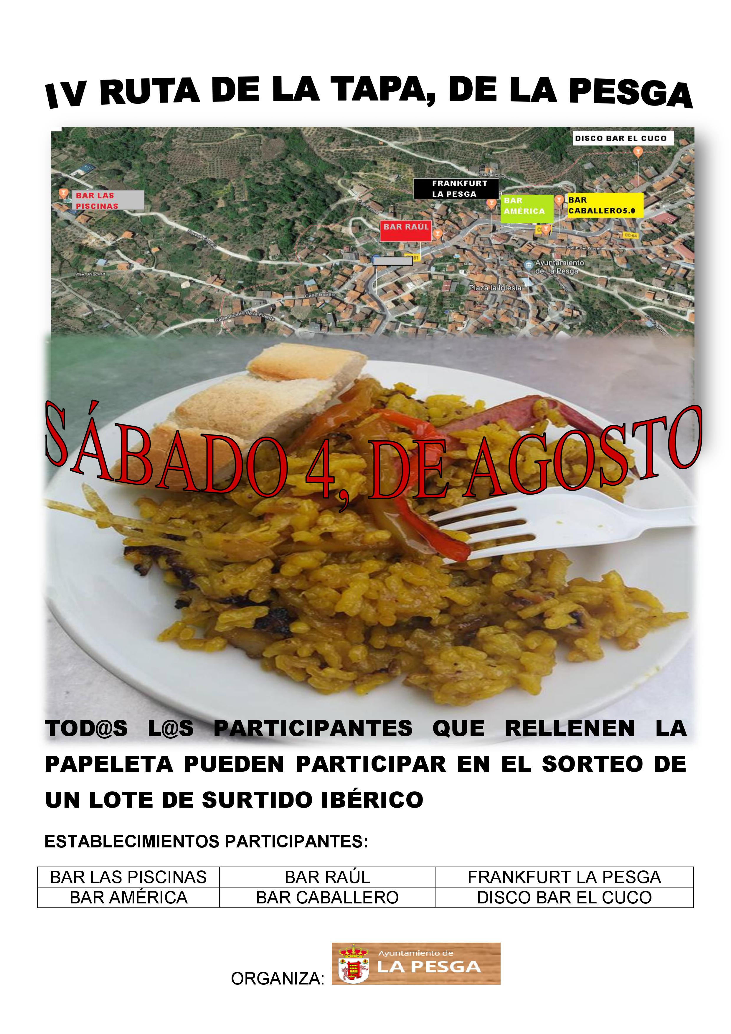 Se informa a todos los vecinos, que este sábado día 4, tendrá lugar la IV Ruta de la Tapa.