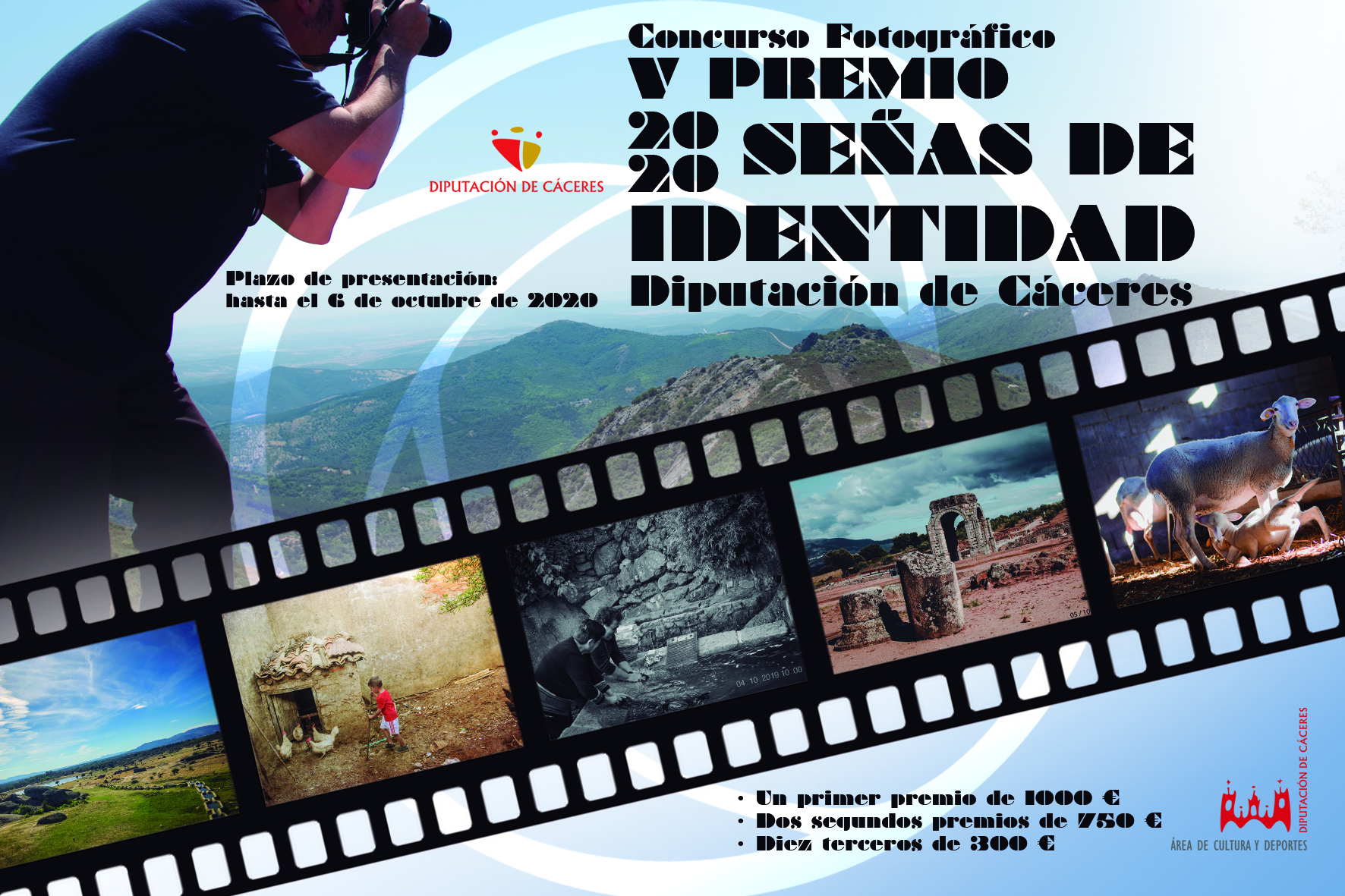 V EDICIÓN PREMIO SEÑAS DE IDENTIDAD Objeto: Promover e incentivar la creación plástica, dentro de los objetivos del Área de Cultura, comprometida con la difusión y promoción de la actividad cultural, al tiempo que potenciar el conocimiento de las formas de vida, pueblos, gentes y tradiciones de la provincia cacereña. Las fotografías presentadas deben haber sido realizadas durante los doce meses previos a la finalización del plazo del presentación de obras, por lo que llevarán marcadas la fecha de realización. Plazo: Desde el día siguiente a la publicación de las bases en BOP hasta el 6 de octubre de 2020. Destinatarios: Edades entre 18 y 35 años (a fecha de 31 de diciembre de 2020) y que residan en cualquier municipio de la provincia de Cáceres. Premios: Un primer premio de 1000 euros Dos segundos premios de 750 euros Diez terceros de 300 euros.Pueden consultar las bases en el siguiente enlace: https://cloud.dip-caceres.es:5001/sharing/D5UM3TEJm