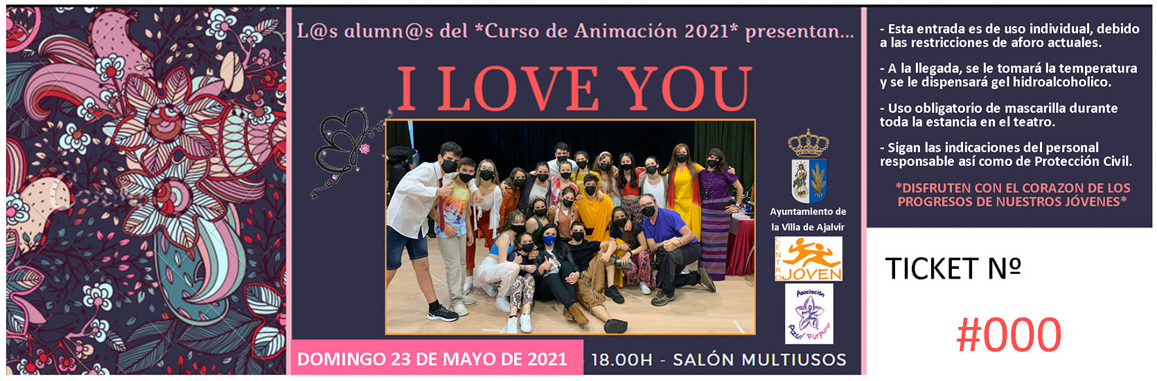 El próximo domingo día 23 de Mayo, los alumnos del curso *Animación Creativa, Jóvenes y Desarrollo Personal* realizarán un segundo pase de su muestra final *I Love You*, para tod@s l@s que no pudisteis disfrutar de esta bonita y emocionante experiencia.