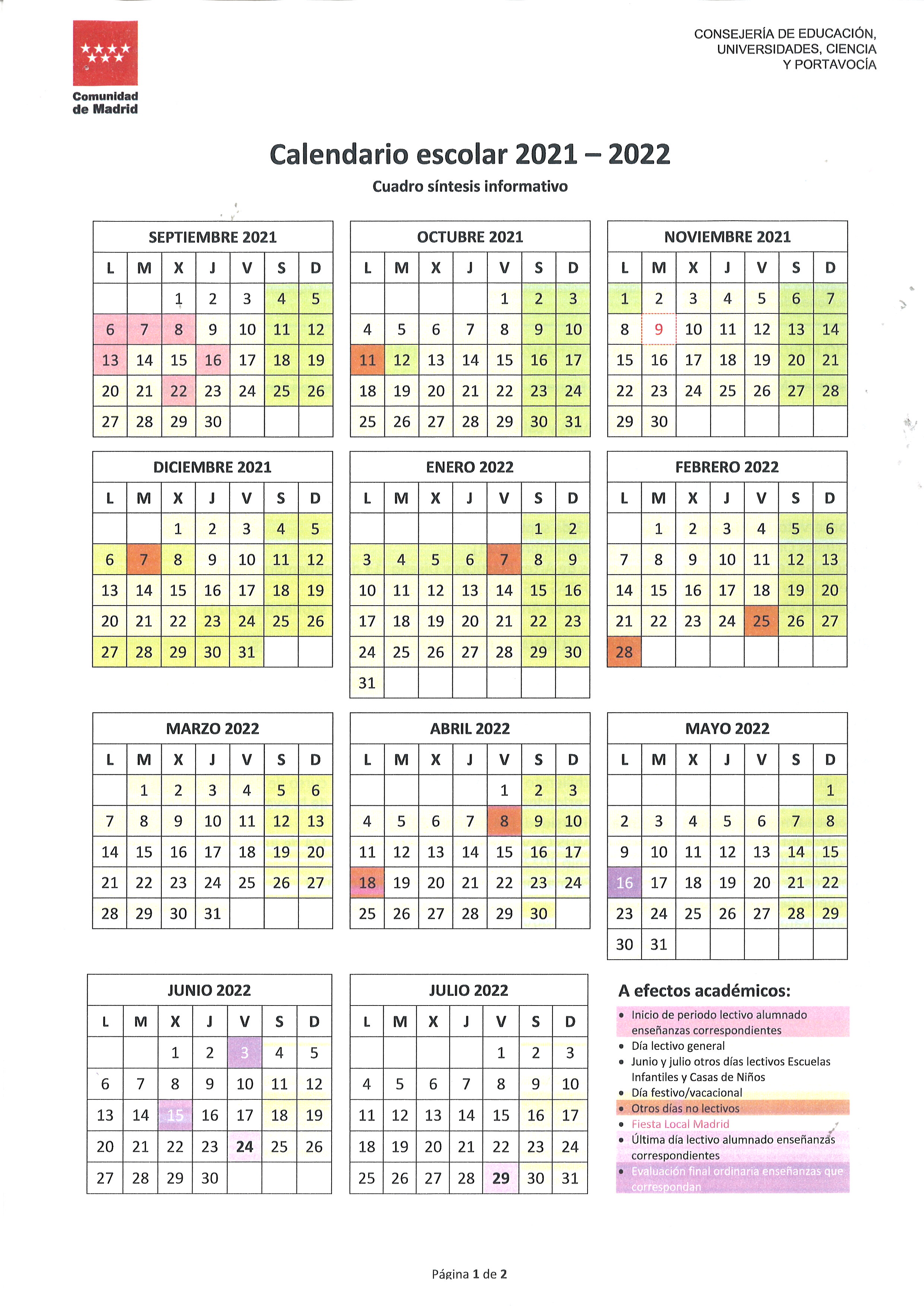 El inicio de las actividades lectivas implantadas por la Comunidad de Madrid para el curso 20/21 es el siguiente; para los alumnos de la Escuela Infantil la Espiga comenzará el día 6 de septiembre, los alumnos del centro CEIPSO San Blas, infantil y primaria se iniciará el 7 de septiembre y para los alumnos de secundaria la fecha fijada es el 8 de septiembre.