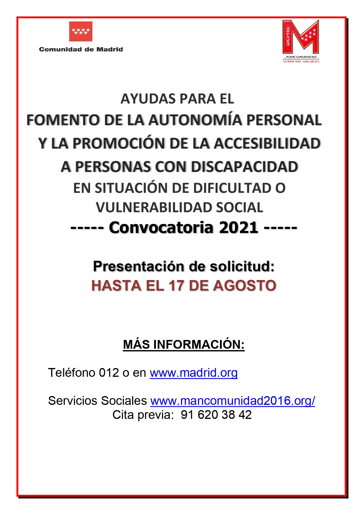 AYUDAS PARA EL FOMENTO DE LA AUTONOMIA PERSONAL Y LA PROMOCION DE LA ACCESIBILIDAD A PERSONAS CON DISCAPACIDAD EN SITUACIÓN DE DIFICULTAD O VULNERABILIDAD SOCIAL DEL AÑO 2021