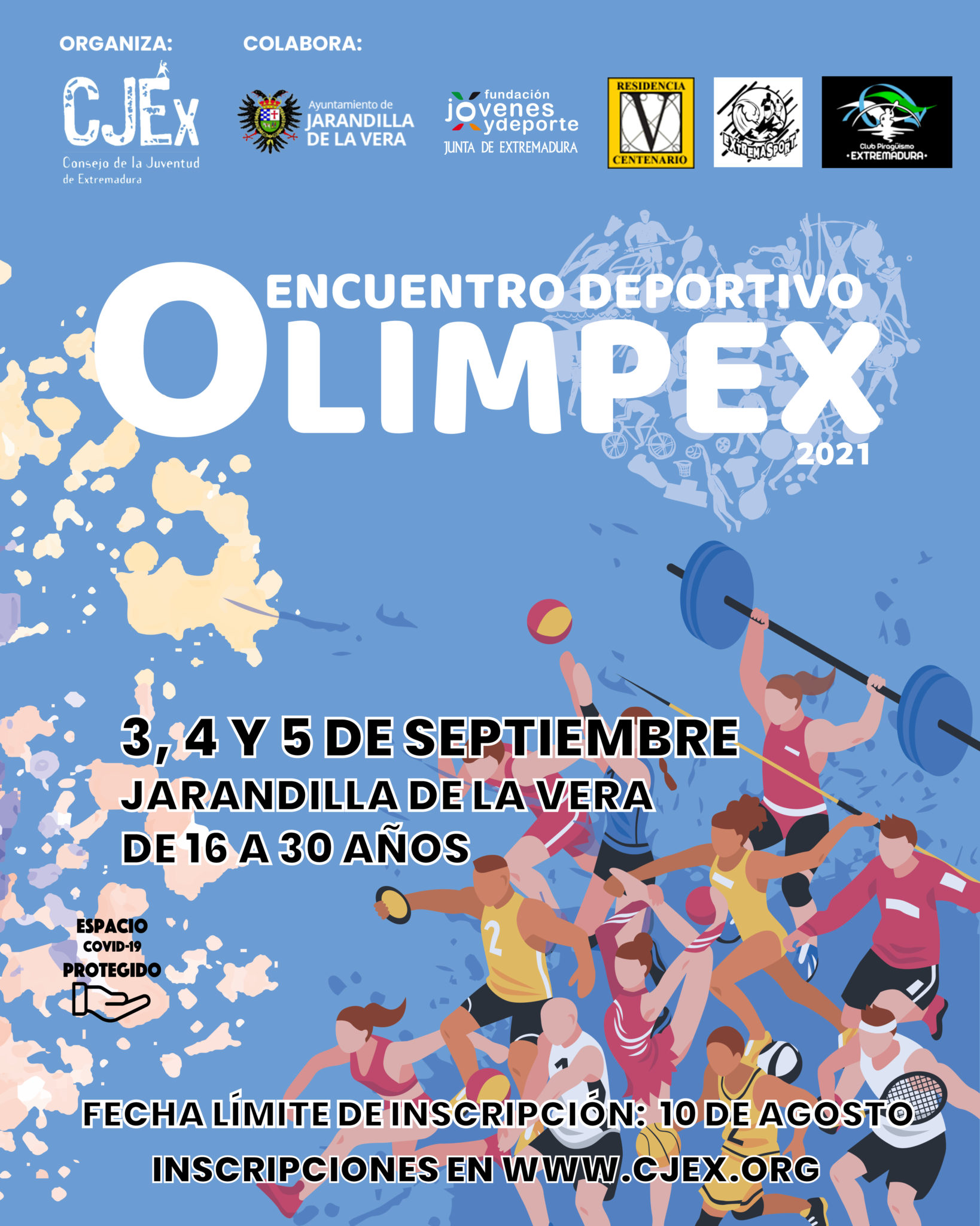 Se informa a todos los jóvenes sobre el Encuentro OLIMPEX 2021 del Consejo de la Juventud de Extremadura, que este año se celebrará los días 3, 4 y 5 de Septiembre en Jarandilla de la Vera.