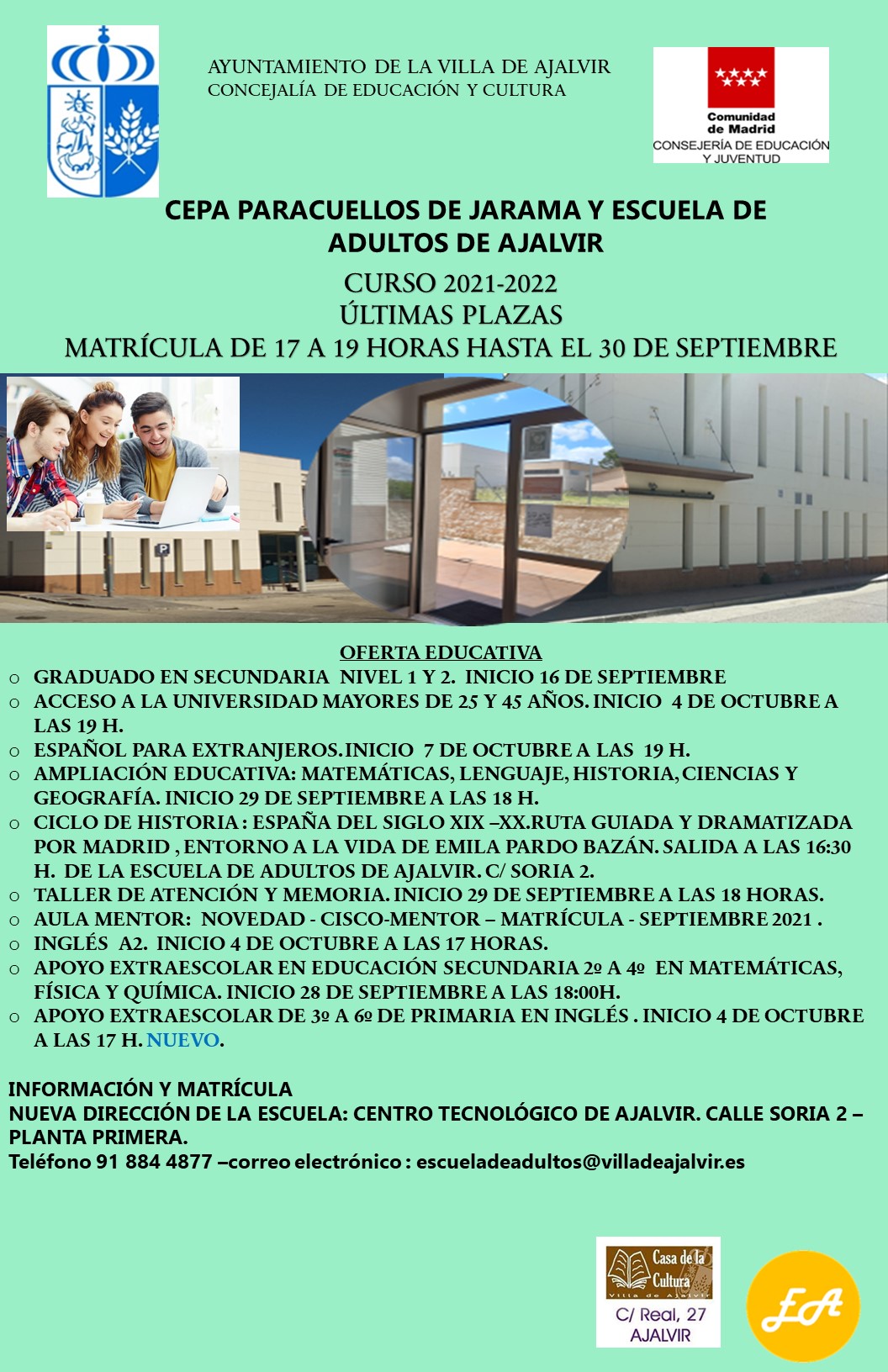 El Ayuntamiento de Ajalvir junto a la concejalía de Educación impulsan y apoyan este programa que responde a la necesidad de mejorar los índices de éxito escolar de todos aquellos alumnos de nuestra Comunidad Educativa de Ajalvir que requieran refuerzo educativo adicional a parte del que realizan en el horario lectivo.