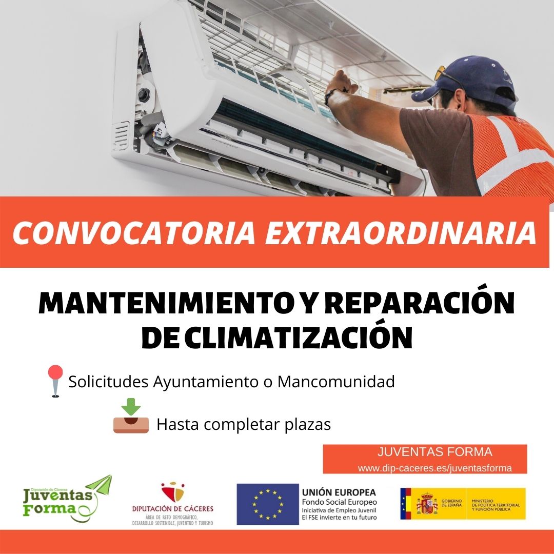 Se informa del Curso "Mantenimiento y reparación de climatización" del Programa Juventas Forma, de Diputación de Cáceres.