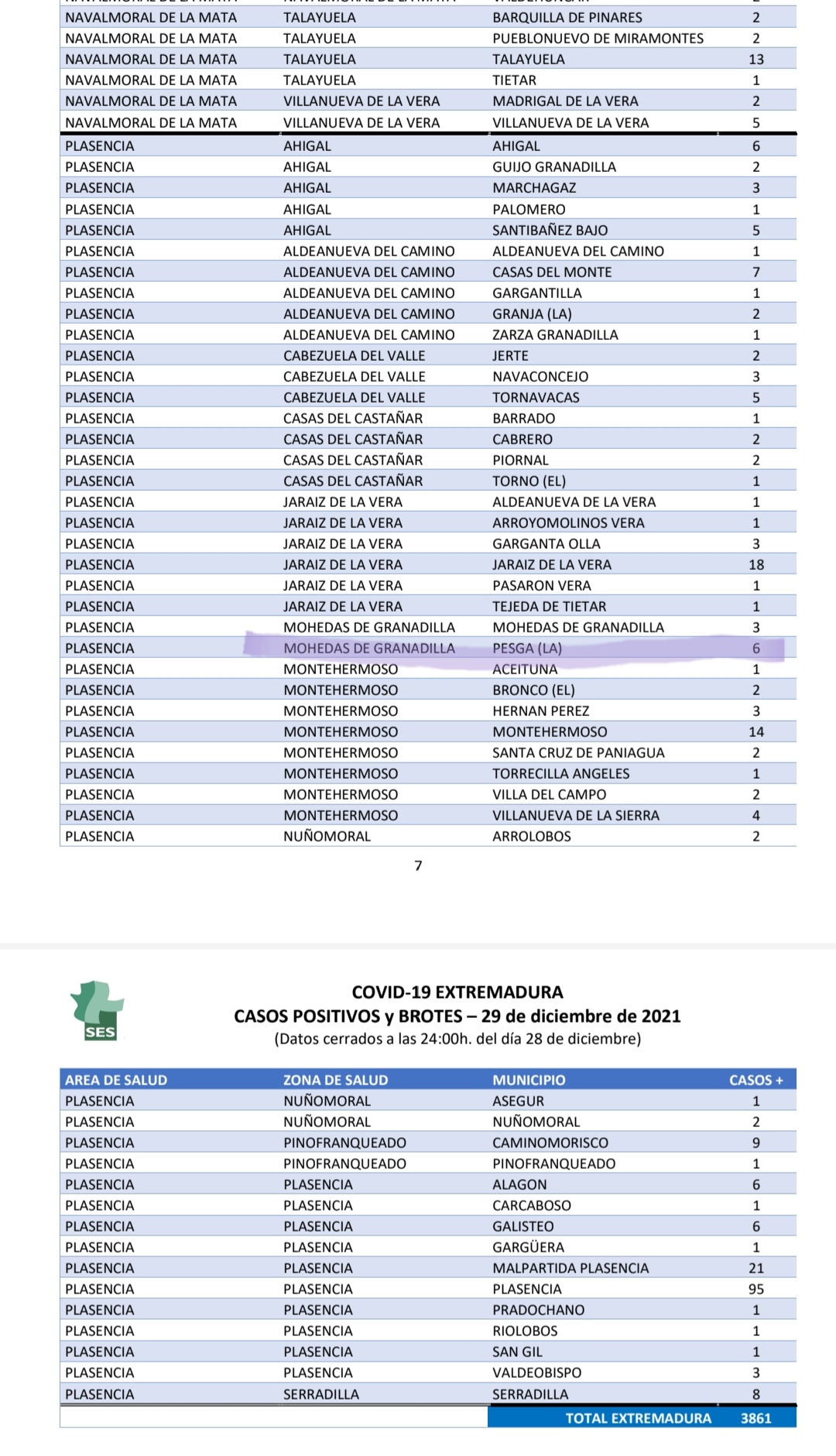 Se informa desde el SES de 6 nuevos casos positivos de covid19, en La Pesga. Estos, junto con los 5 anteriores, suman 11 positivos en nuestra localidad.