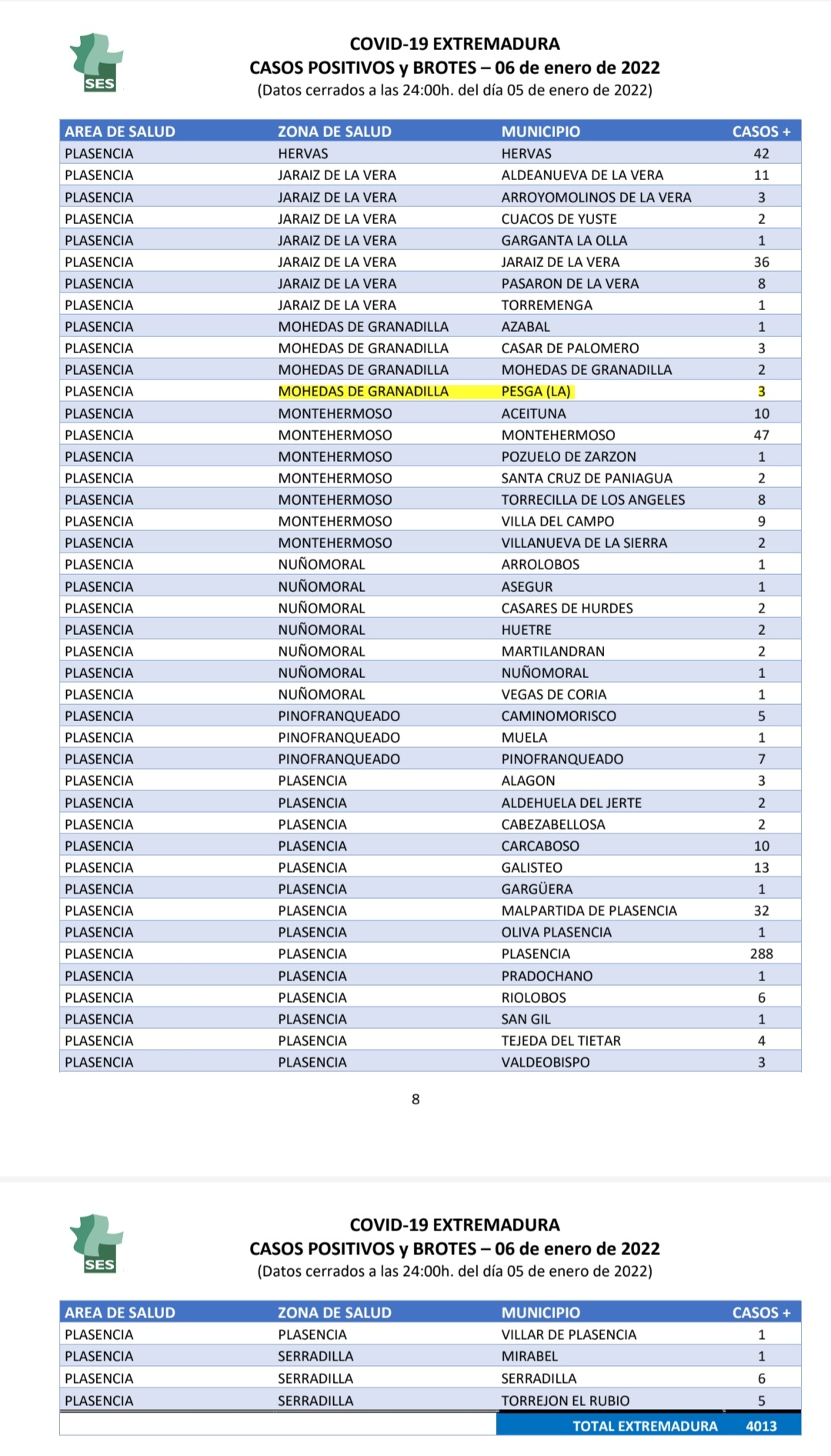 Se informa de los casos positivos en el pueblo que se han publicado en el SES, en estos tres últimos días, que han sido un total de 9 casos.