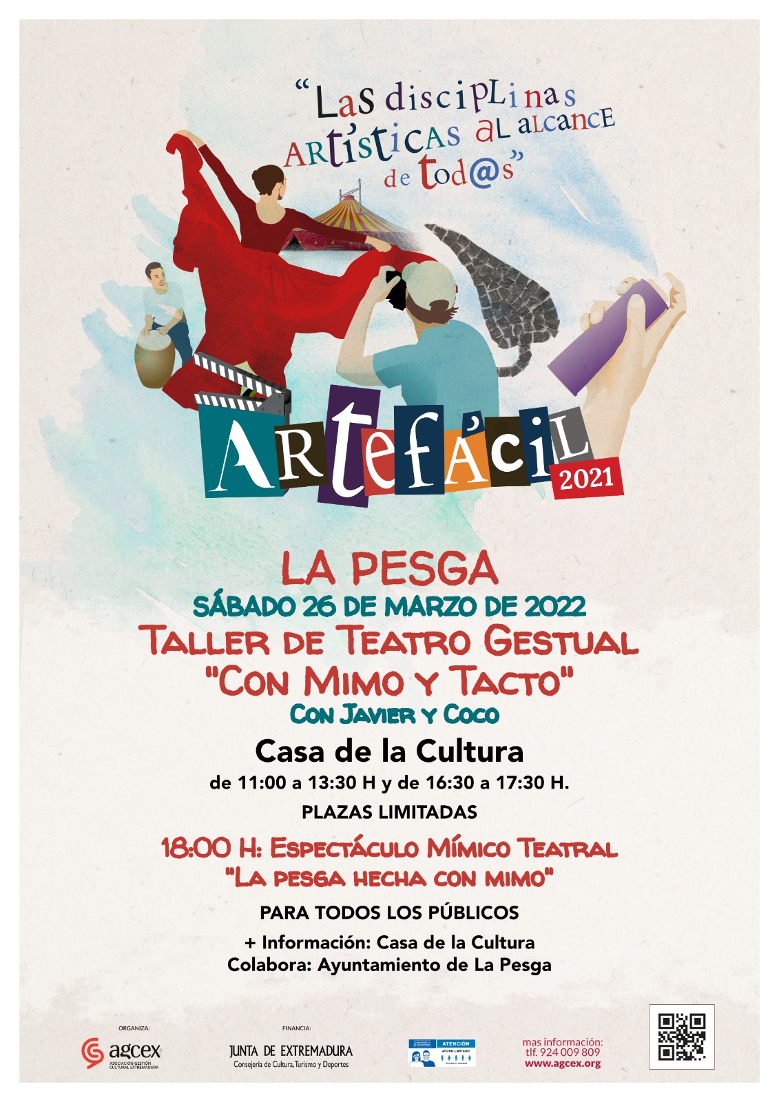 El Taller de Teatro Gestual "CON MIMO Y TACTO" será este sábado 26 de Marzo en horario de 11:00-13:30h y 16:30-17:30h en la Casa de la Cultura, sin límite de edad, puedes pasar a apuntarte por el Ayuntamiento o por la Casa de la Cultura.