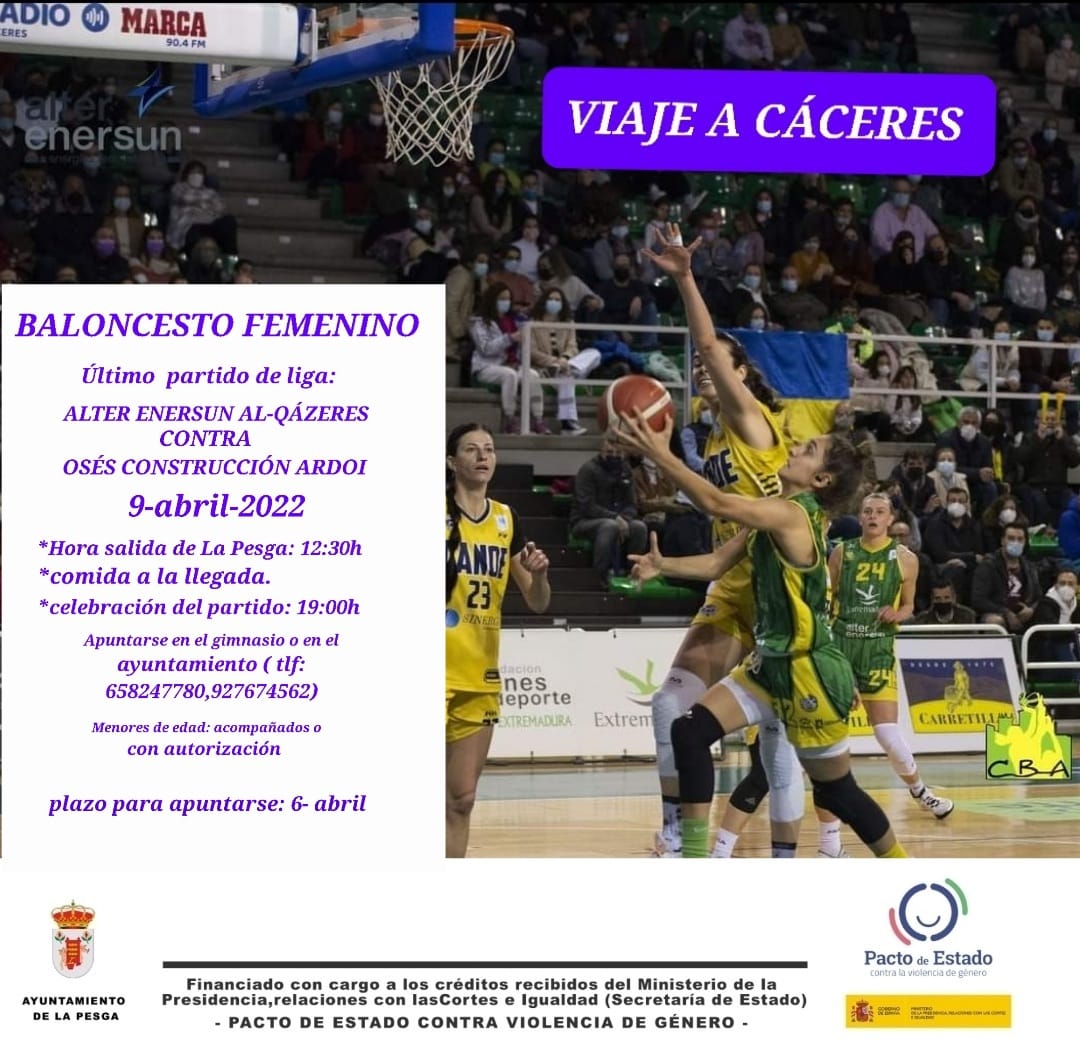 Recordamos que dentro de las campañas de sensibilización para el empoderamiento femenino, en este caso en el mundo deportivo, el Ayuntamiento ofrece a toda la vecindad interesada, un VIAJE GRATUITO A CÁCERES para asistir al último partido de liga de BALONCESTO FEMENINO.