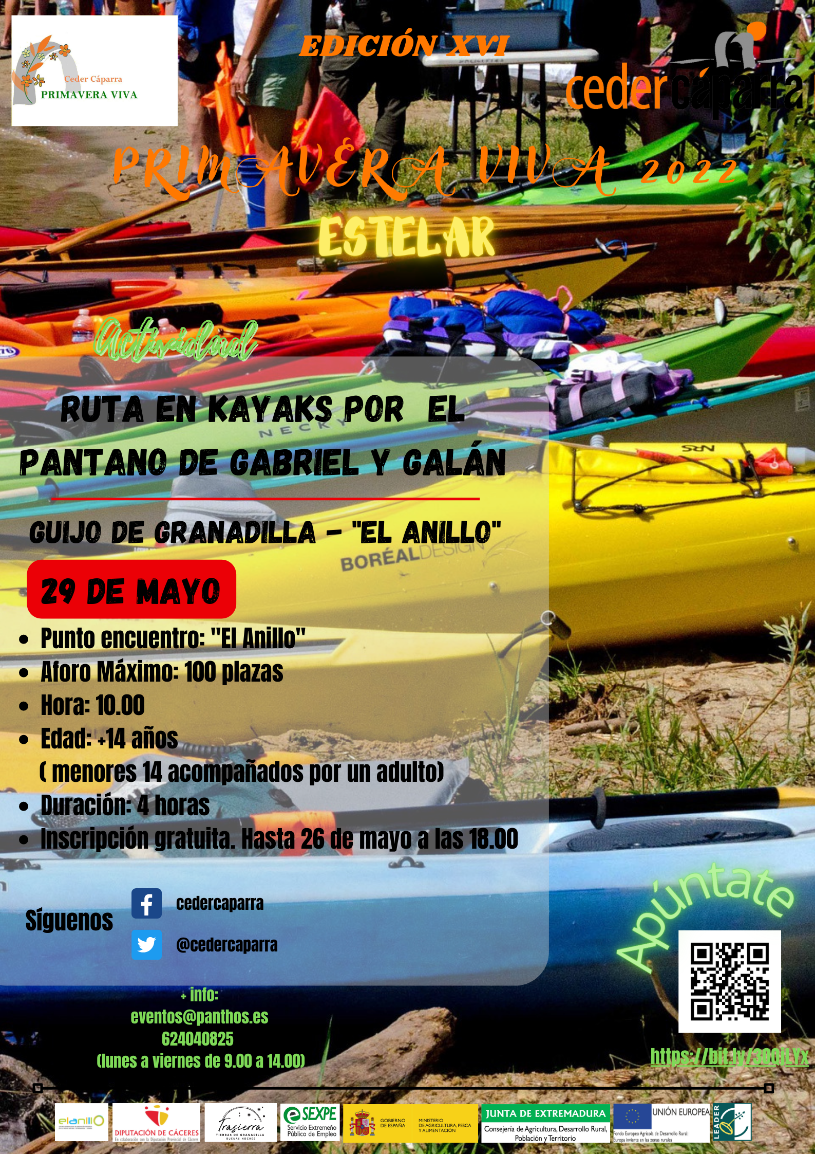Se informa a todos los interesados que el día 29 de Mayo se llevara a cabo una Ruta en Kayak por el panto Gabriel y Galán, inscripciones hasta el día 26 de mayo, gratuita