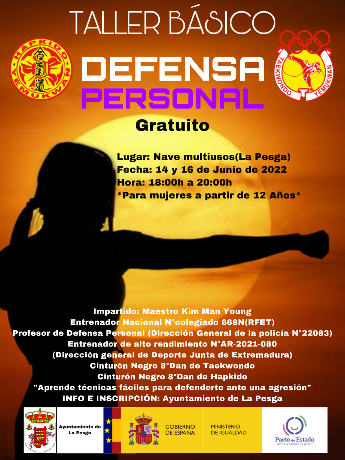 El Ayuntamiento de La Pesga ofrece a las mujeres del municipio, mayores de 12 años, un Taller de Defensa Personal, a cargo de los Fondos del Pacto de Estado contra la violencia de género.