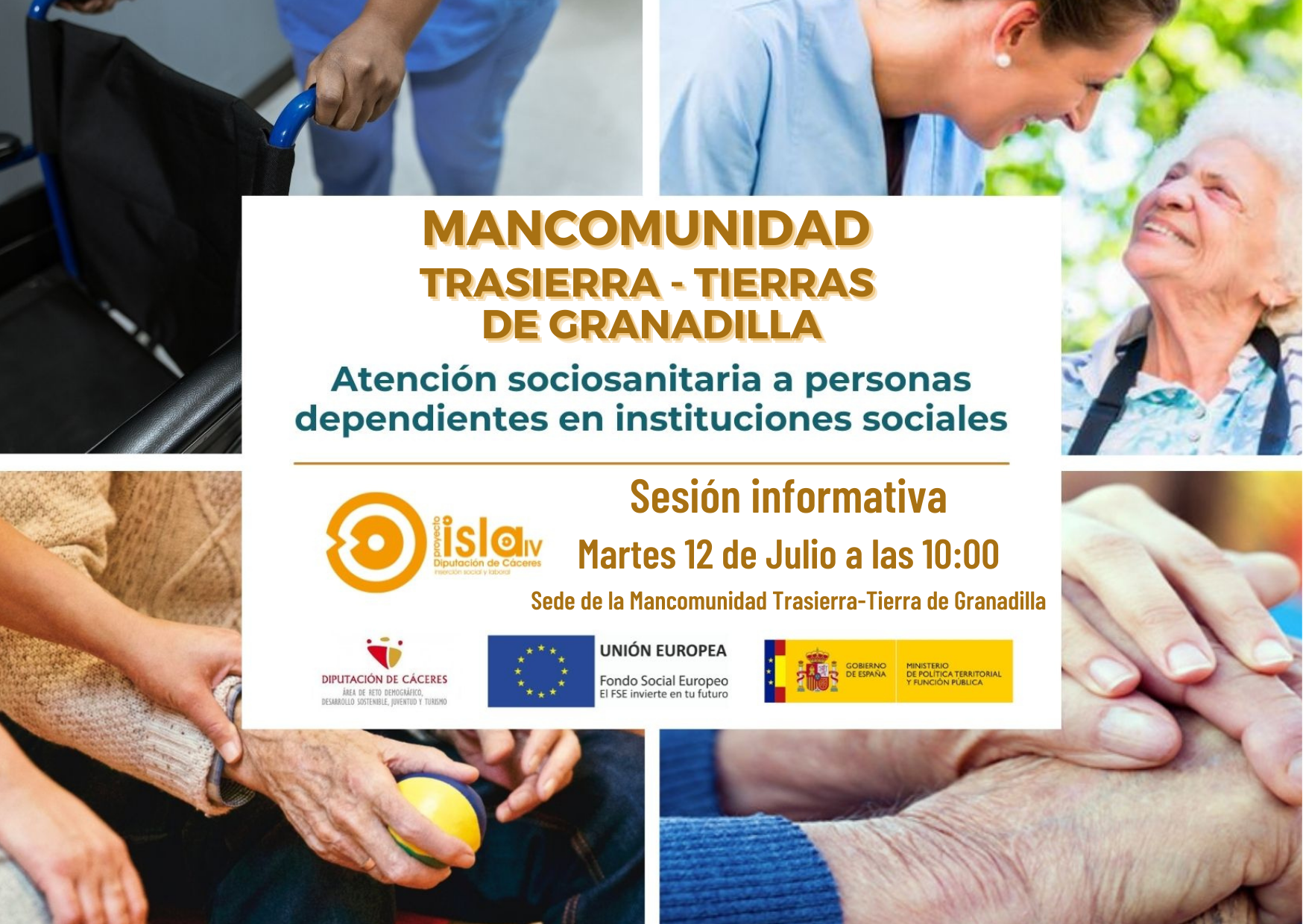 RECORDAMOS que Diputación de Cáceres convoca un Curso de Atención sociosanitaria a personas dependientes en Instituciones Sociales en nuestra comarca (Tierras de Granadilla) a través del Programa ISLA IV.