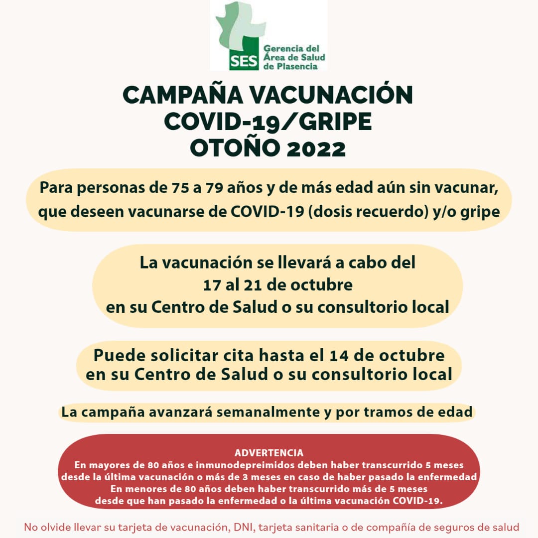 Se informa a las personas de 75 a 79 años y más edad que deseen vacunarse del COVID y o gripe, que pueden pasar a apuntarse en el Consultorio Médico hasta el día 14 de octubre.