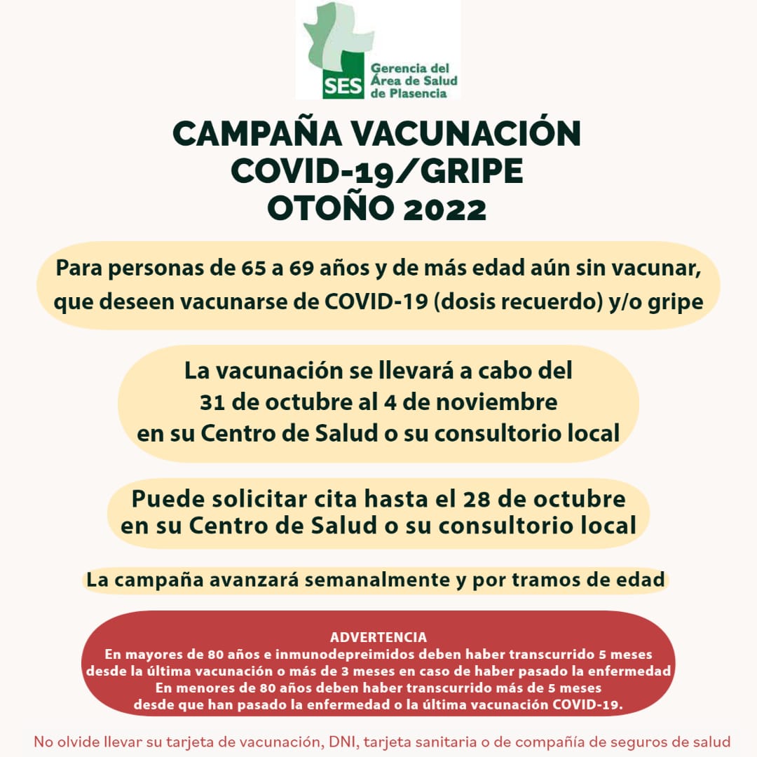 Se informa a todas las personas de 65 a 69 años y de más edad SIN vacunar, que deseen vacunarse de Covid-19 y/o gripe, pasen a apuntarse por el Consultorio Médico de 8:00 a 11:00 h, hasta el día 28 de octubre.
