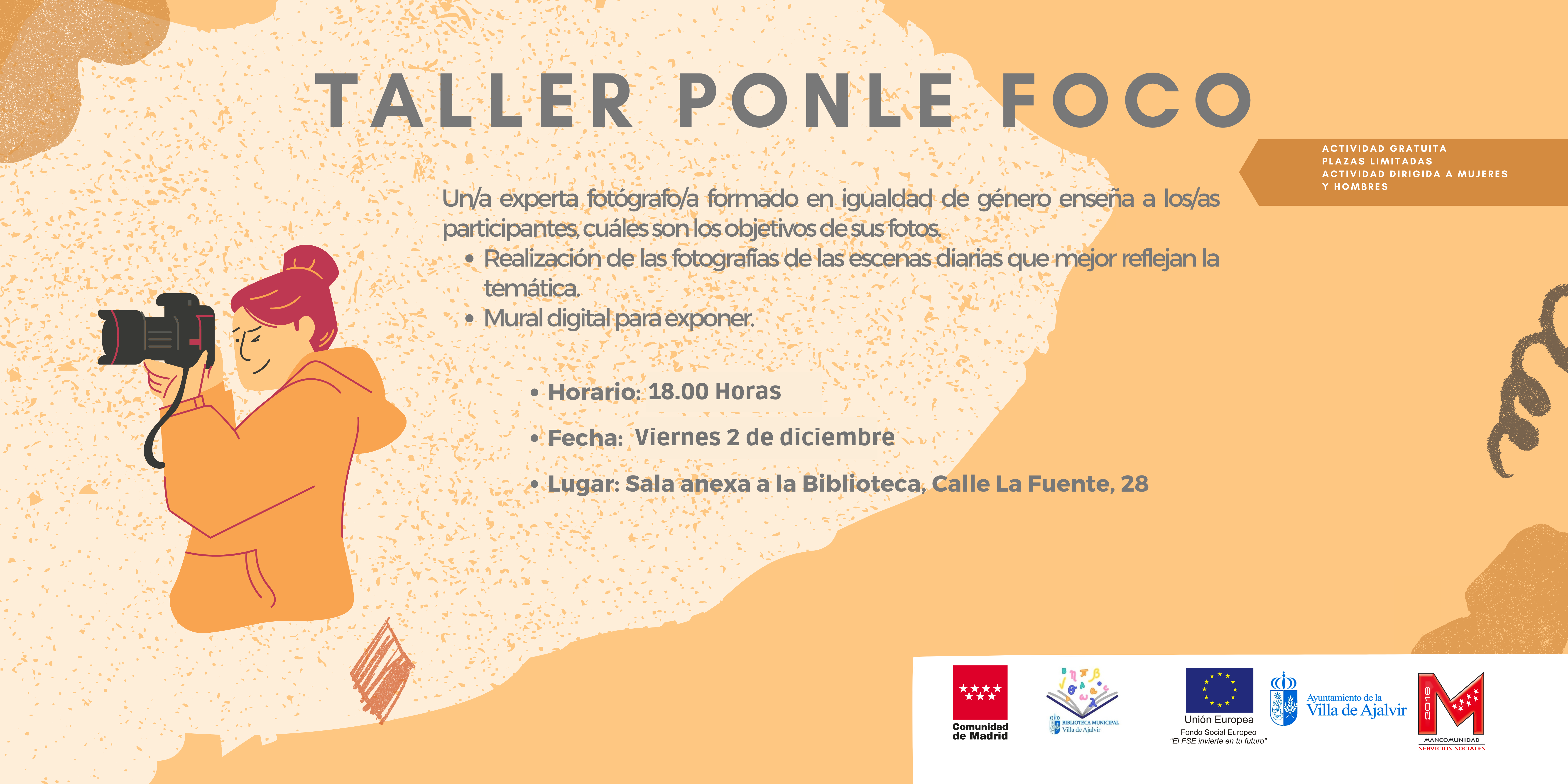 Un/a experta fotógrafo/a formado en igualdad de género enseña a los/as participantes cuáles son los objetivos de sus fotos.