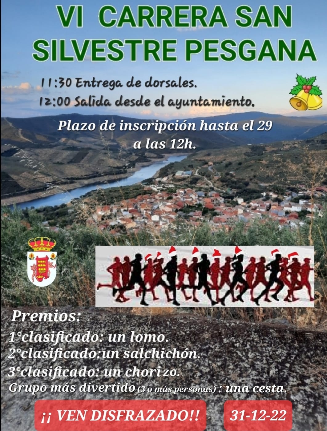 Se informa a tod@s l@s interesad@s que el próximo 31 de Diciembre, un año más se celebrará la Carrera San Silvestre Pesgana, se saldrá desde el Ayuntamiento, a partir de las 11:30h se entregarán los dorsales y a las 12:00 h dará comienzo la carrera.