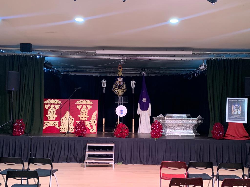 Los miembros de la Junta Directiva de la Hermandad mostraron a todos los asistentes las nuevas adquisiciones que en esos días podremos disfrutar en los diferentes pasos . Como va a ser la peana y sobre peana para Maria Santísima de la Soledad, la talla frontal que llevará el paso del misterio, los faroles, base del estandarte, así como la túnica, el antifaz, con el escudo bordado a mano y el cíngulo en color morado y plata, que lucirán los nazarenos en el cortejo.