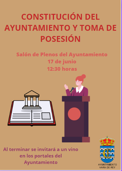 Estáis todos invitados al Acto Publico de Constitución del Ayuntamiento de Vara de Rey.Dia 17 de Junio 12:30 horasSalón de Plenos