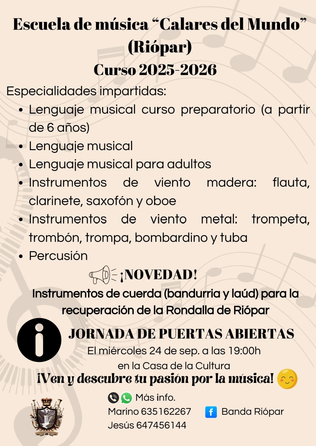 !La Escuela de Música "Calares del Mundo" inicia curso! Un curso cargado de grandes novedades.