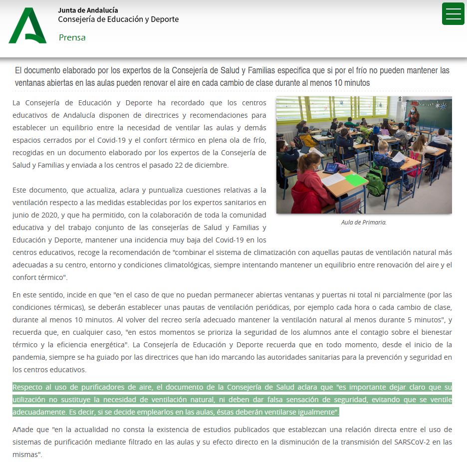 Fundamentándonos en lo que los expertos en salud recomiendan, los usos de purificadores de aire no sustituyen la necesidad de ventilación, ni debe dar falsa sensación de seguridad, evitando que se ventile adecuadamente.